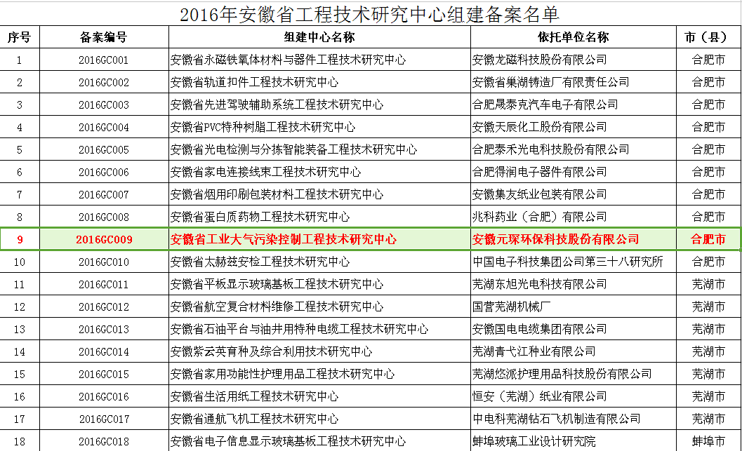热烈祝贺PA视讯集团官网环保获得《安徽省工程技术研究中心》荣誉
