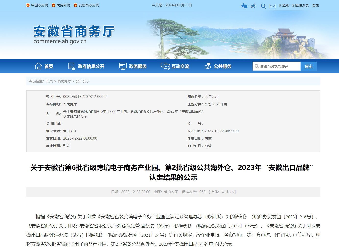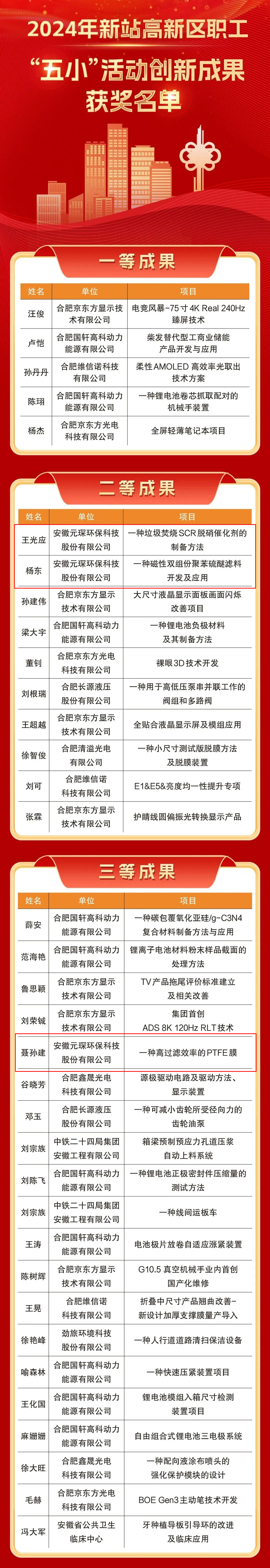 安徽省PA视讯集团官网环保科技有限公司获安徽省质量奖