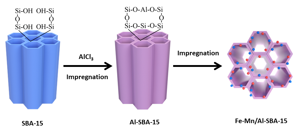 图1. Fe-Mn/Al-SBA-15分子筛脱硝催化剂合成示意图
