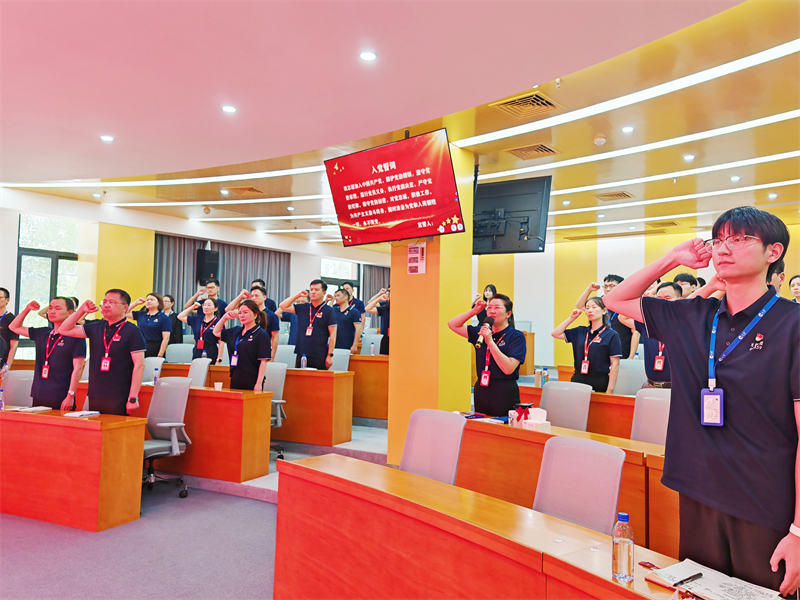 会议最后,全体党员起立重温入党誓词,这一庄严时刻让每一位党员的心灵都得到了洗礼,更加坚定了他们的理想信念和对党忠诚的决心。接着,全体党员齐声合唱《我和我的祖国》,也展示了党组织的凝聚力和战斗力。